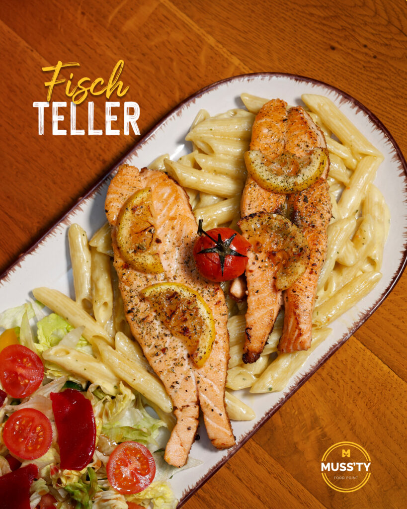 Penne-Pesto, Lachs und Salat (A,C,G,L,M,O)