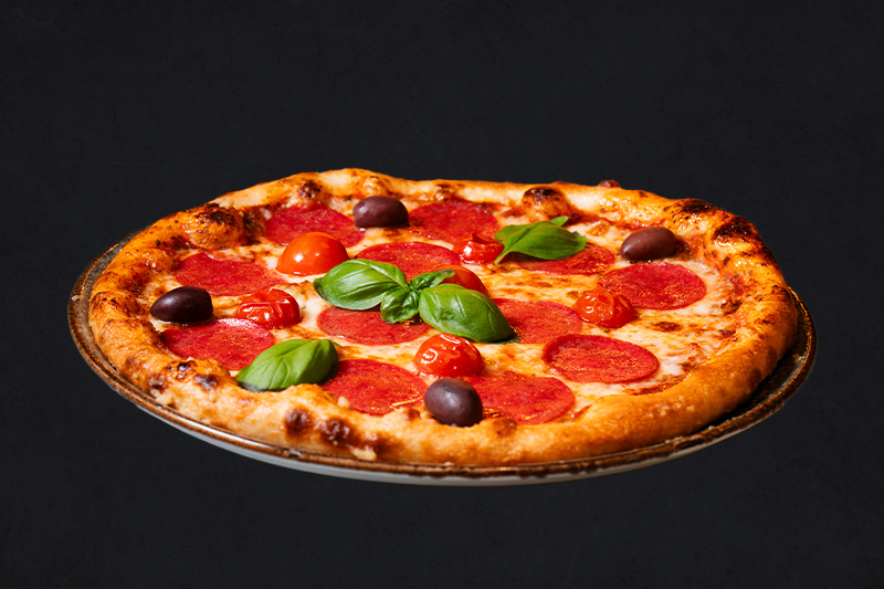 Tomatensauce, Mozzarella, Cherry-Tomaten, Salami, Oliven (A,C,G,L)