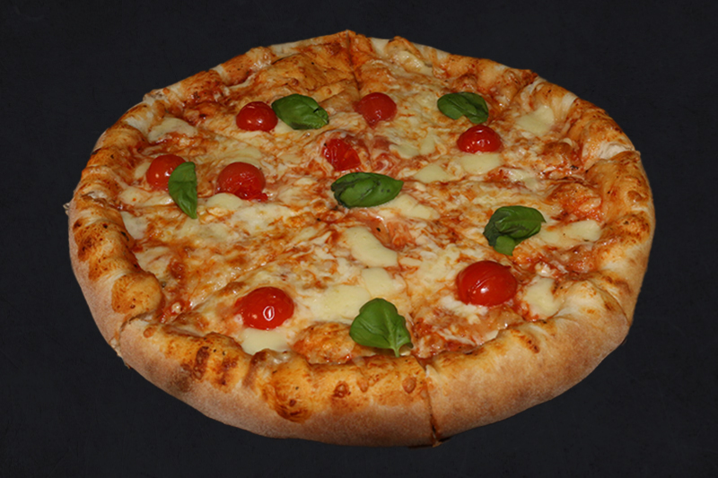 Tomatensauce, Mozzarella, Cherry-Tomaten, Würfel-Mozzarella, Basilikum und Pesto (A,C,G,L)